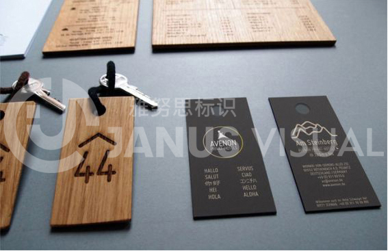 酒店標識牌是一種應用于酒店的廣告標牌。酒店標識系統是根據酒店整體設計風格為導向,綜合解決酒店方向性引導,視覺識別等運行功能為前提配合酒店整體工程項目實施的其中一部分工程。主要用以突出酒店的風格特色,主要制作材質以紅木、金屬(銅、鐵、鋁、錫、鈦金、不銹鋼)為主,制作工藝較為復雜,選用材質也很多。按照功能來劃分,酒店標牌分大堂指示牌(如收銀)、樓層指示牌、門號牌、功能指示牌、時鐘指示牌、告示牌、房價牌、外幣兌換牌等。